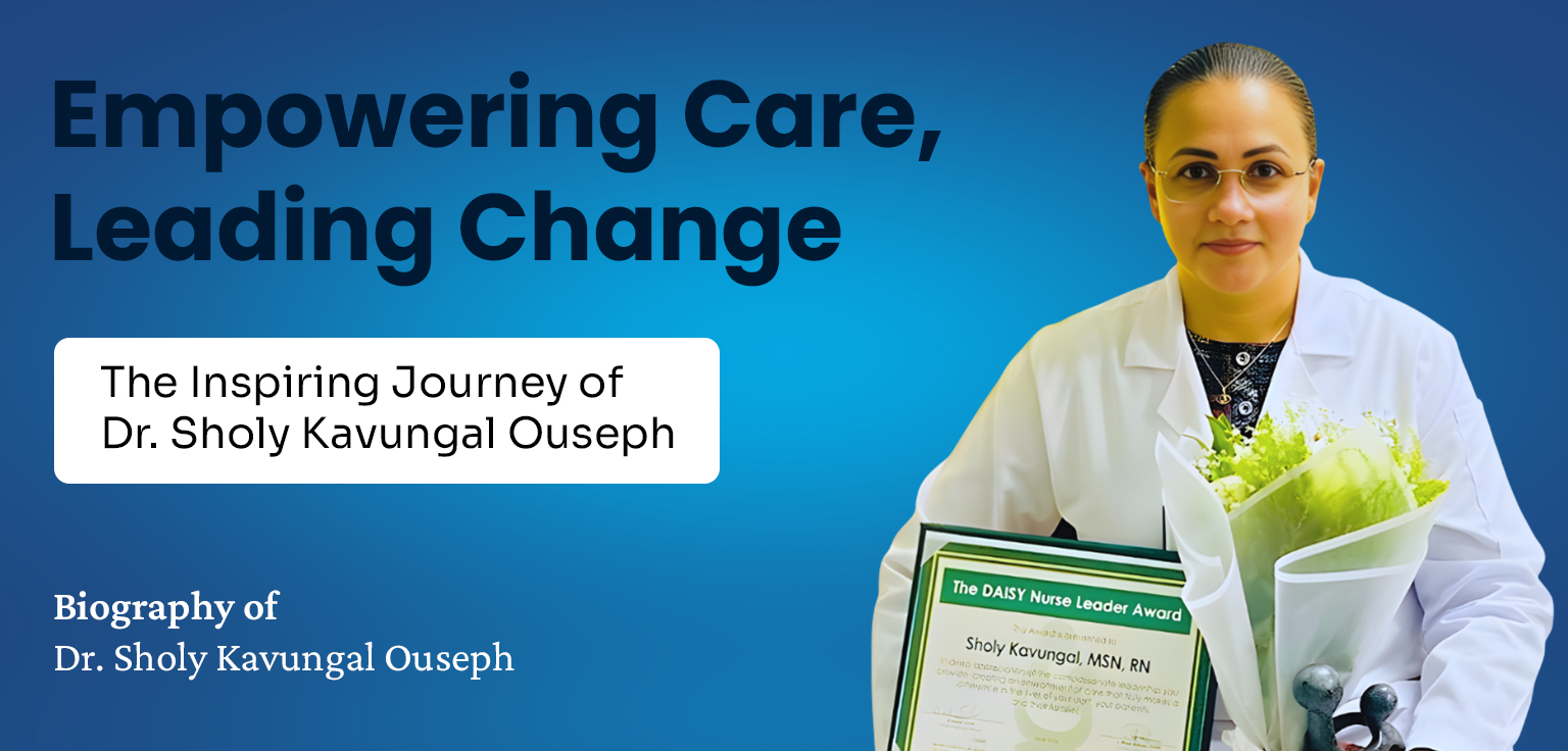 The life of Dr. Sholy Kavungal Ouseph is a living example of selflessness, dedication, and the power of resilience. Her journey from a small village in Chalakudy, Kerala to becoming a prominent figure in healthcare leadership reflects not only her professional prowess but also her deep commitment to service and her unwavering belief in the transformative power of nursing. Dr. Kavungal’s story is one of perseverance, compassion, and an extraordinary ability to rise above challenges, creating a lasting impact on the lives of countless individuals along the way.